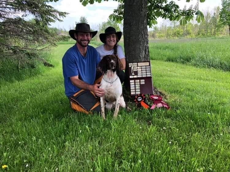 Pictured are Morgan Phillips, owner operator of MP Canine Academy, Natasha Walch, and Rebel with their amazing reward for working and training as a team. Narvin's Born to Rebel took a 2nd in the Limit on Saturday and 2nd in the Amateur Stake on Sunday along with the Guns award.